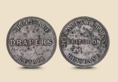 In the dusty streets of nineteenth century Brisbane, the smell of eucalyptus is mixed with the sound of bustling crowds, and a curious currency jingles in the pockets of shopkeepers, workers and customers.